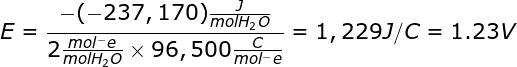 단 이 때의 기전력 1.23V의 기전력은 에너지 손실이 전혀 없이 모든 화학에너지가 전기에너지로 이론적으로 변환되었다고 가정했을 때의 값이다.