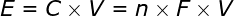 E: 전기적에너지 C: 쿨롱 V: 전압 F: 페러데이 n: 기체의 몰 수