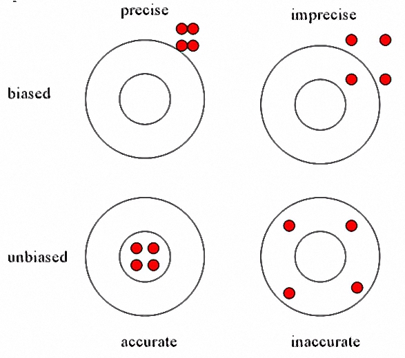 데이터의 평균이 인정된 값과 차이, 즉 정확도에 영향