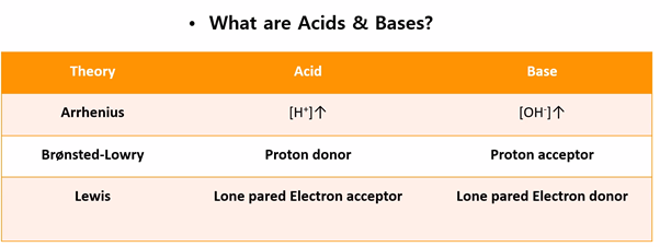 산과 염기에서 가장 중요한 점은 수용액 상태라는 점이다.